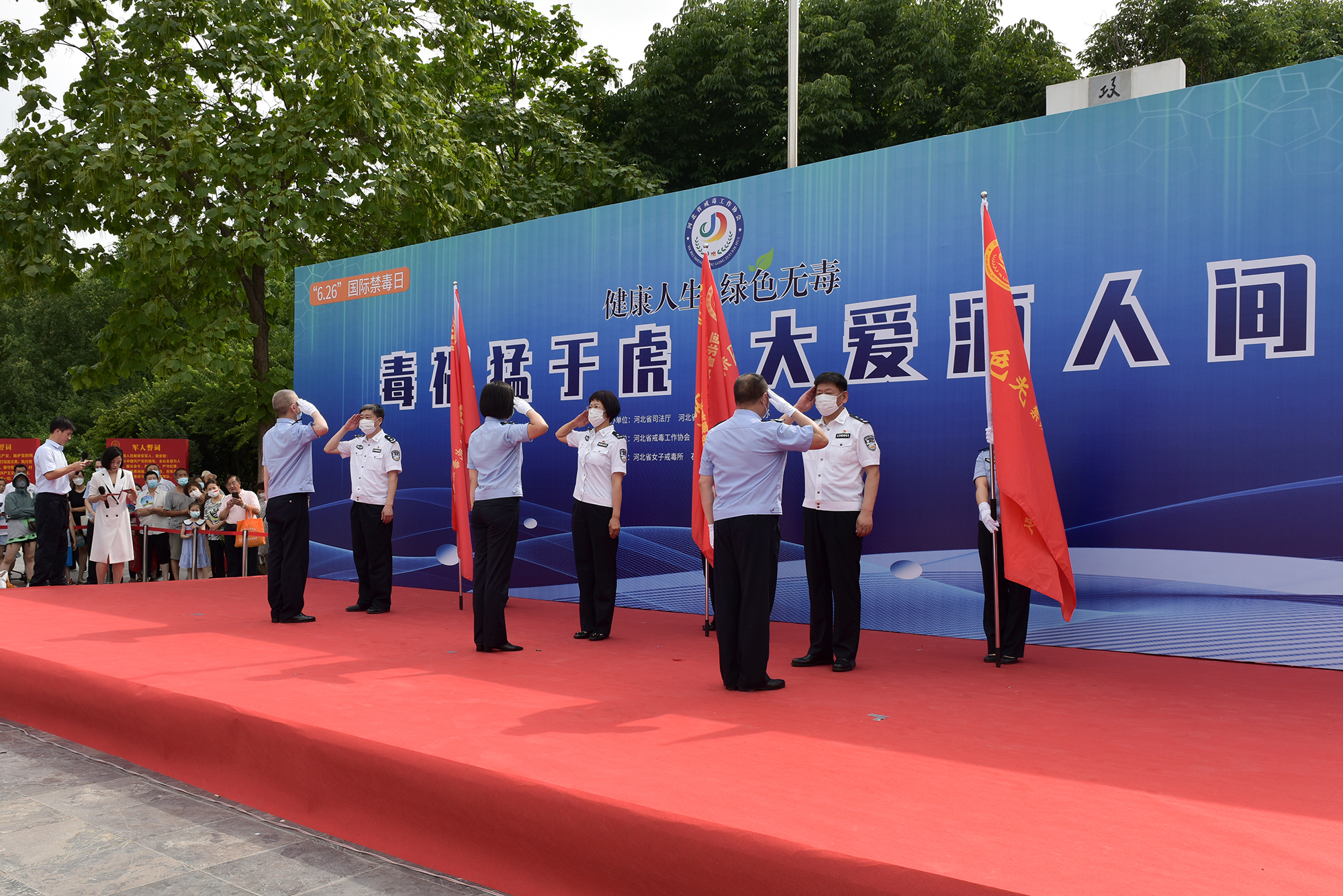 开展全民禁毒宣传活动 筑牢禁毒思想防线。2022年6月26日,以第35个“国际禁毒日”为契机,河北省司法厅联合河北省禁毒办、河北省法宣办在石家庄市桥西区时光公园举办“健康人生 绿色无毒”为主题的大型集中宣传教育活动。省司法厅厅长宋仁堂、省公安厅副厅长傅海涛、省司法厅副厅长、戒毒管理局局长乔新月、省禁毒办常务副主任田彤颜等领导出席会议。河北省强制隔离戒毒所、河北省女子强制隔离戒毒所、石家庄市第二强制隔离戒毒所、桥西公安分局及社会志愿服务人员代表参加宣传活动。