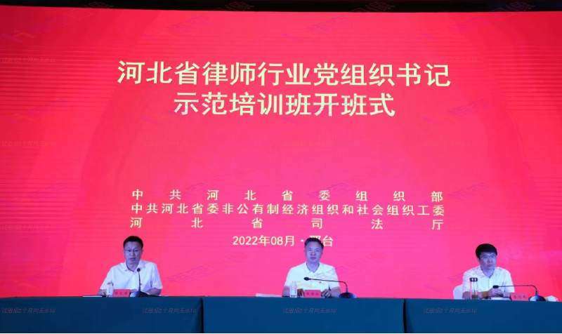 2022年8月22日上午,由河北省委组织部、省委两新工委、省司法厅联合主办的河北省律师行业党组织书记示范培训班在邢台市正式开班。省司法厅党委委员、副厅长王金水作开班动员讲话,邢台市委常委、组织部部长吕瑞民致辞,开班式由省委组织部组织三处处长郭文东主持。邢台市司法局党组、河北东方伟业律师事务所党支部和河北君德风律师事务所党支部作交流发言。各市(含定州、辛集)和雄安新区推荐的律师事务所党组织书记及两新工委书记、省市律师行业党委负责同志共一百四十人参加培训。