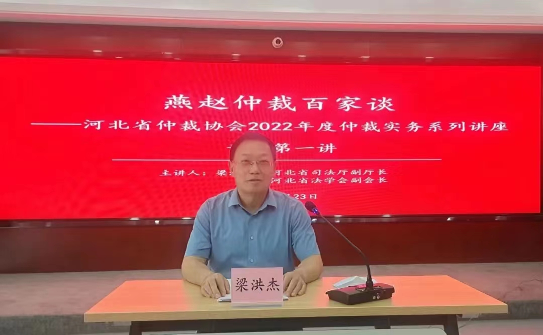 为认真贯彻落实《关于充分发挥仲裁特色优势推动仲裁事业高质量发展的指导意见》,加强仲裁队伍政治素养培树、业务能力建设,提高仲裁工作规范化水平,2022年5月23日下午,河北省仲裁协会主办的“燕赵仲裁百家谈——2022年度仲裁实务系列讲座”正式开班,省司法厅副厅长、省法学会副会长梁洪杰出席开班式并讲授开班第一讲,省仲裁协会会长徐文莉主持开班式。